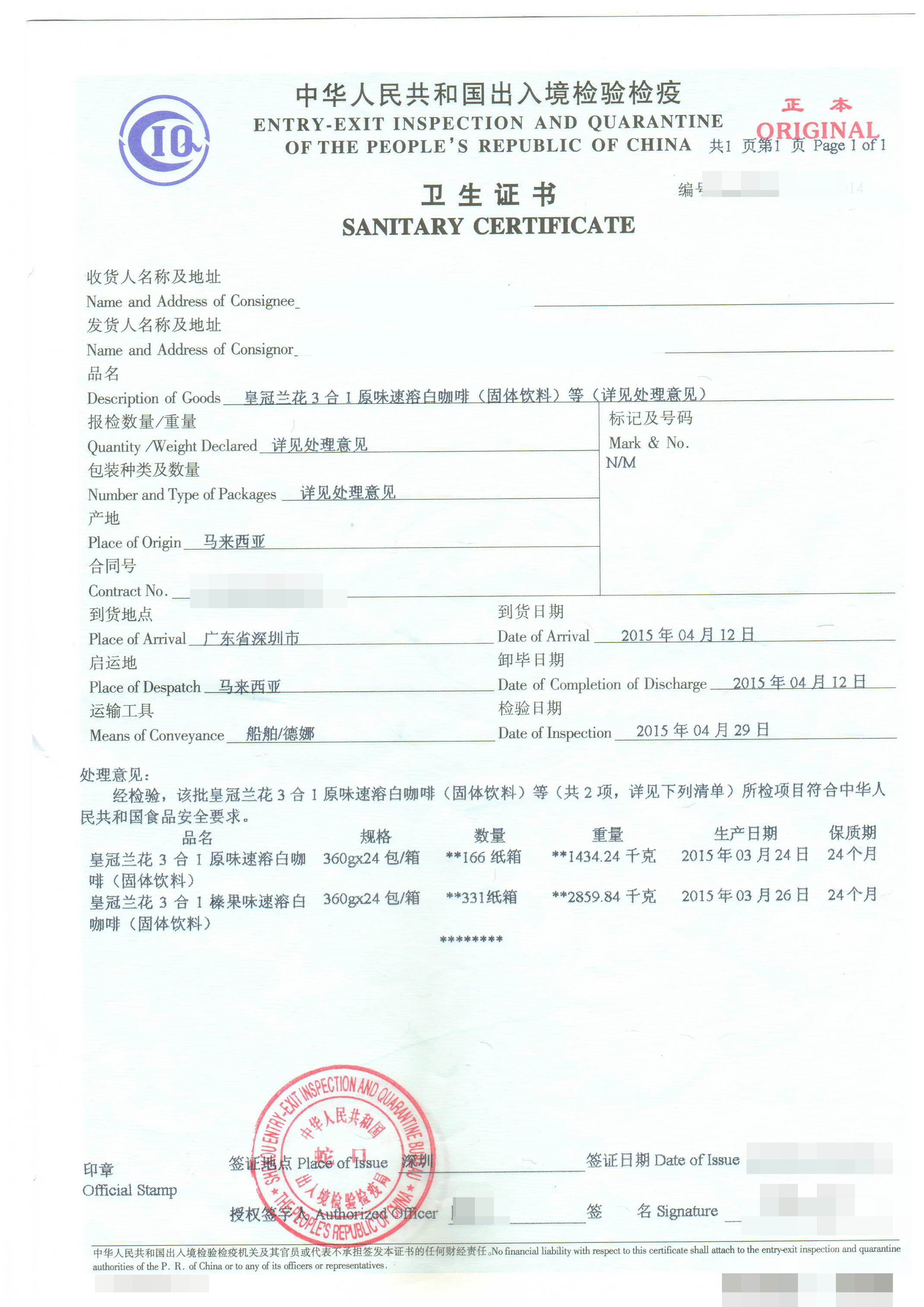 四、馬來西亞白咖啡進口案例的詳細信息: